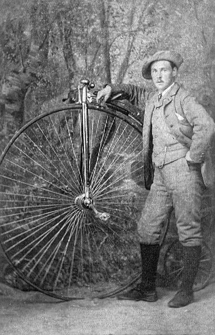 A man with a Penny-farthing bicycle - Ladybank, Scotland c.1880