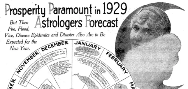 1928 article about astrologers predicting that 1929 will be a year of prosperity Jacqueline Moen