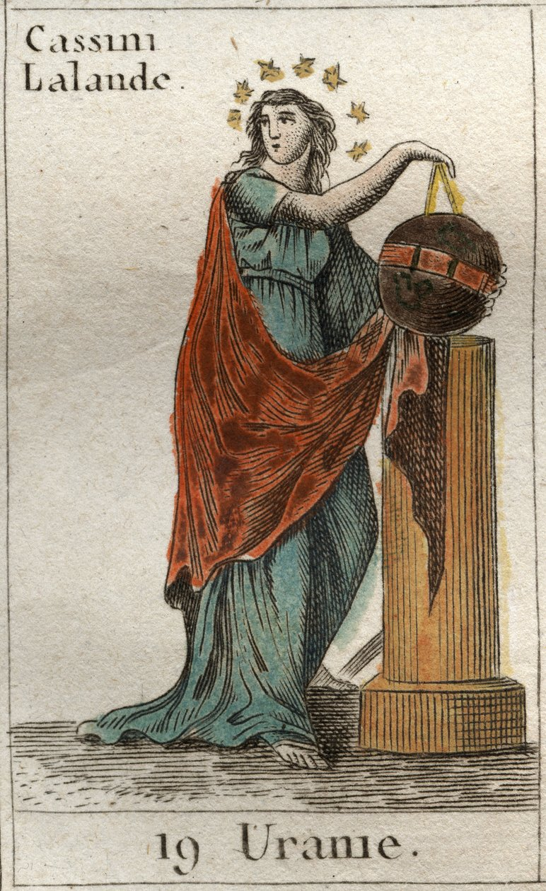 Representation of Urania, Muse of Astronomy and Astrology, She Holds a Globe and a Compass. From 'Mythology of Youth' by Pierre Blanchard 1803