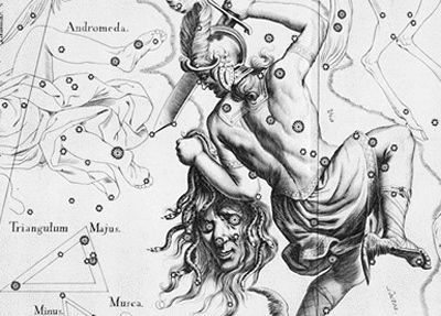Perseus and Medusa from Uranographia by Johannes Hevelius. Image via Wikimedia Commons (public domain).