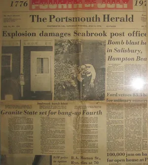 The bombing of the Seabrook Post Office was the lead story in the July 3, 1976, Portsmouth-Herald. Portsmouth Herald