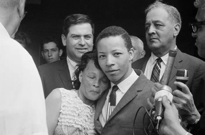George Whitmore Jr. with his mother after his release from the Queens House of Detention for Men. AP