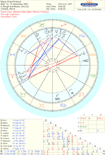 10/30/2024: On today’s episode, Valerie covers the story of the first murder (and execution) in Passaic County, New Jersey. Valerie relays how the gruesome crime against prominent couple, Judge John S. Van Winkle and his wife Jane Van Winkle, was solved surprisingly quickly thanks to Mother Nature and some super sleuthing neighbors, 1800s style. Next in Amy Jo’s 1850 Zodiac Back, we talk about 1850’s heavy Aries energy, including Uranus Pluto conjunctions, and the rugged archetype of the Pluto in Aries generation. Continuing our exploration of the signs of the Zodiac, we take a closer look at Taurus, and wrap up with a moon moment on the upcoming Scorpio new moon.