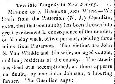Cover Photo: The Van Winkles were Passaic County's first murder victims.