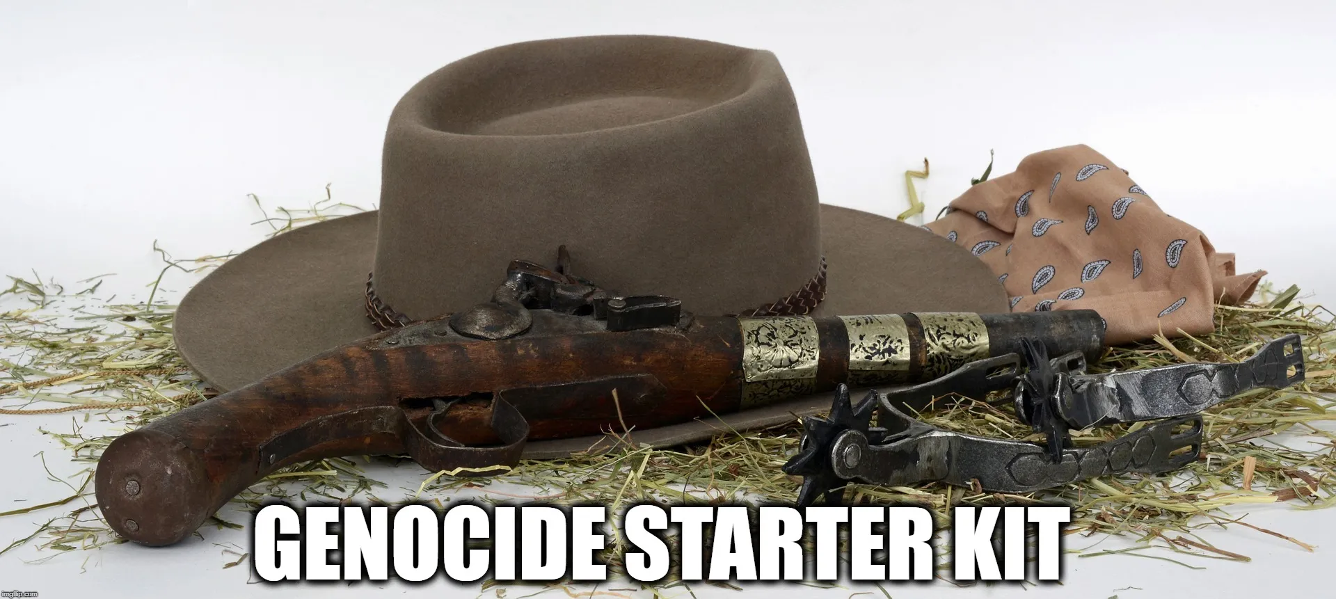 Genocide Starter Kit meme indicating the "rugged individualism" of the Pluto in Aries generation