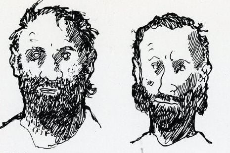 An artists drawing of the Harpe Brothers, Micajah left, and Wiley